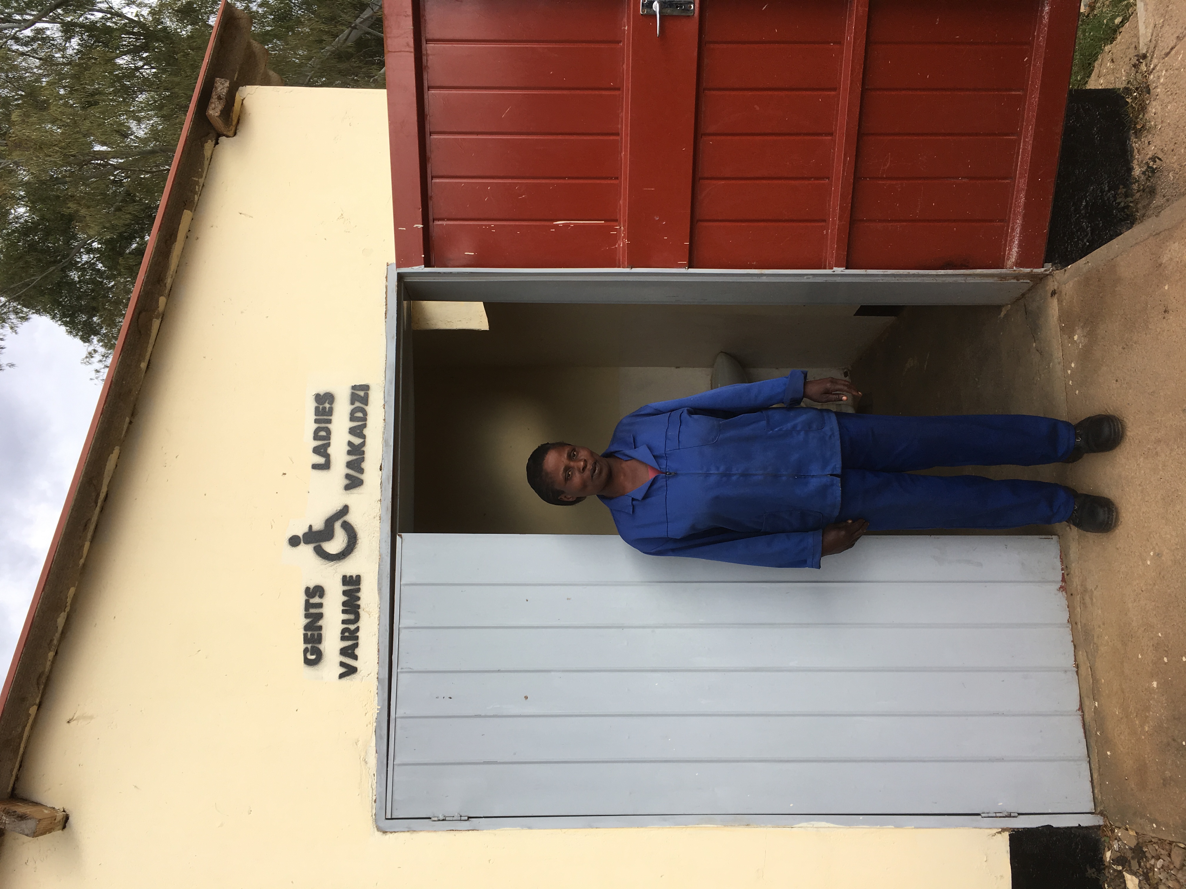 Farisai Chirengwa (pictured) lives in Murereka in Mashonaland West in Zimbabwe. She works as an attendant at the newly constructed public toilet block near the market in conjunction with the Welthungerhilfe Sustainable Services for Everyone beyond the Lifetime of the Project at a Fair Price (SELF) project in the CS WASH Fund. Every day, including Sundays, she opens the toilet block at 6am and stays there until it closes at 6pm. People come to use the toilet and she collects 20 cents per use. The toilet block has only been open a short time so people are still getting used to it but she says on average she gets around 20 people a day using it. Nearby is the old public toilet block which is free to use, and so is competition for her. However, she says that more and more people are coming to her block, particularly women and people who have difficulty walking and who want to use the accessible toilet.