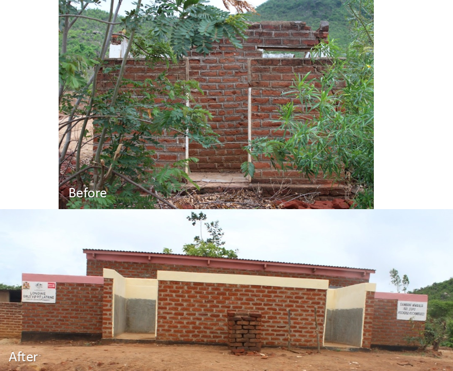 The girls’ latrine has been constructed, which includes a specific ‘menstrual hygiene management’ room for girls to wash, change and discretely and hygienically dispose of their sanitary items. The fruits of this are already apparent, with girls now able to attend school throughout the month. Standard 8 learner Mwaiywawo said “as of now we do attend school even if we are menstruating because we have a latrine with a changing room at school. Now, whenever we have our periods we just go and take care of ourselves in the changing room and then go straight back in class, unlike before when there were no changing rooms”.