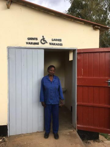 Farisai Chirengwa lives in Murereka in Mashonaland West in Zimbabwe. She works as an attendant at the newly constructed public toilet block constructed near the market with support from the CS WASH Fund and Welthungerhilfe.