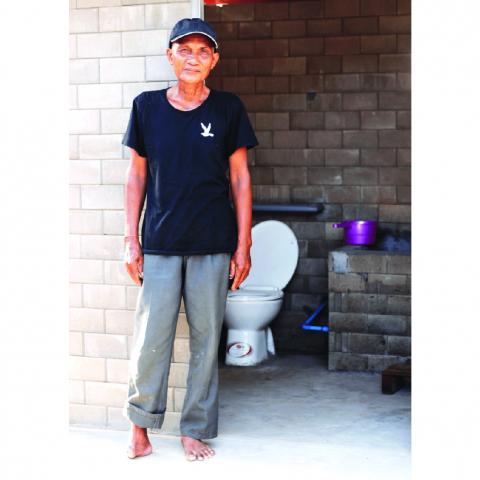 Mr Phum Min lives in Cambodia’s Siem Reap province with his wife and children. When he was in the military, he lost his right foot in a black powder explosion. Since then, he has had to save money for regular medical treatments and medicine. In early 2017, iDE’s sanitation program visited Min’s village to promote a latrine shelter that could be adapted for people with disabilities. His family decided to buy the shelter and sitting toilet right away.